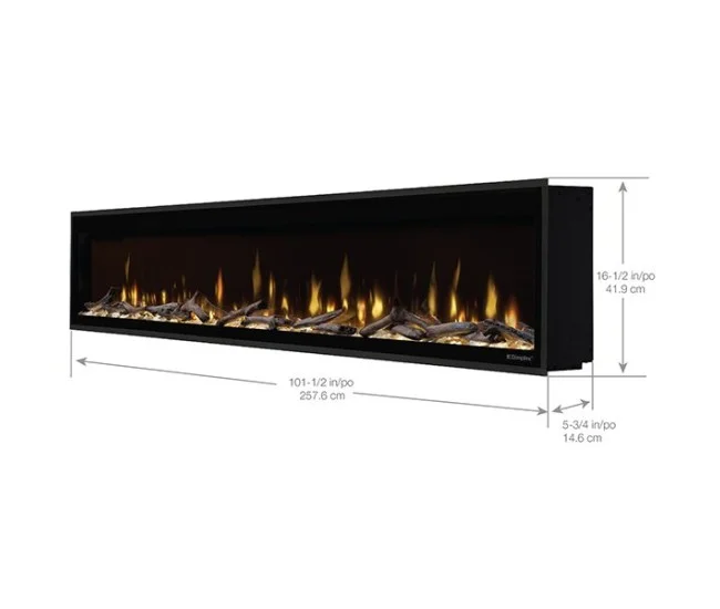 Fireplace: 101-1/2" W x 16-1/2" H x 5-3/4" D