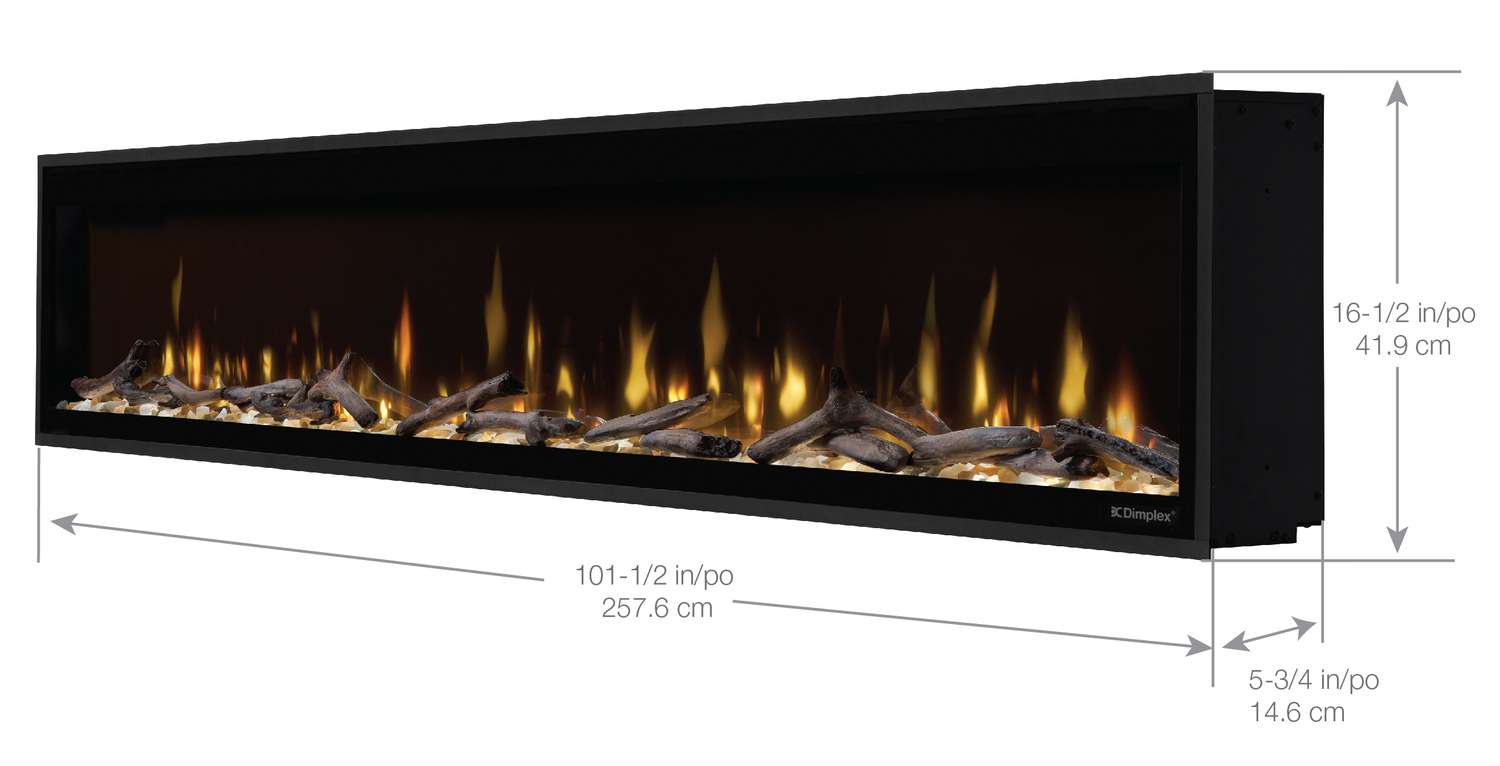 - Fireplace: 5.75"L x 101.42"W x 16.50"H