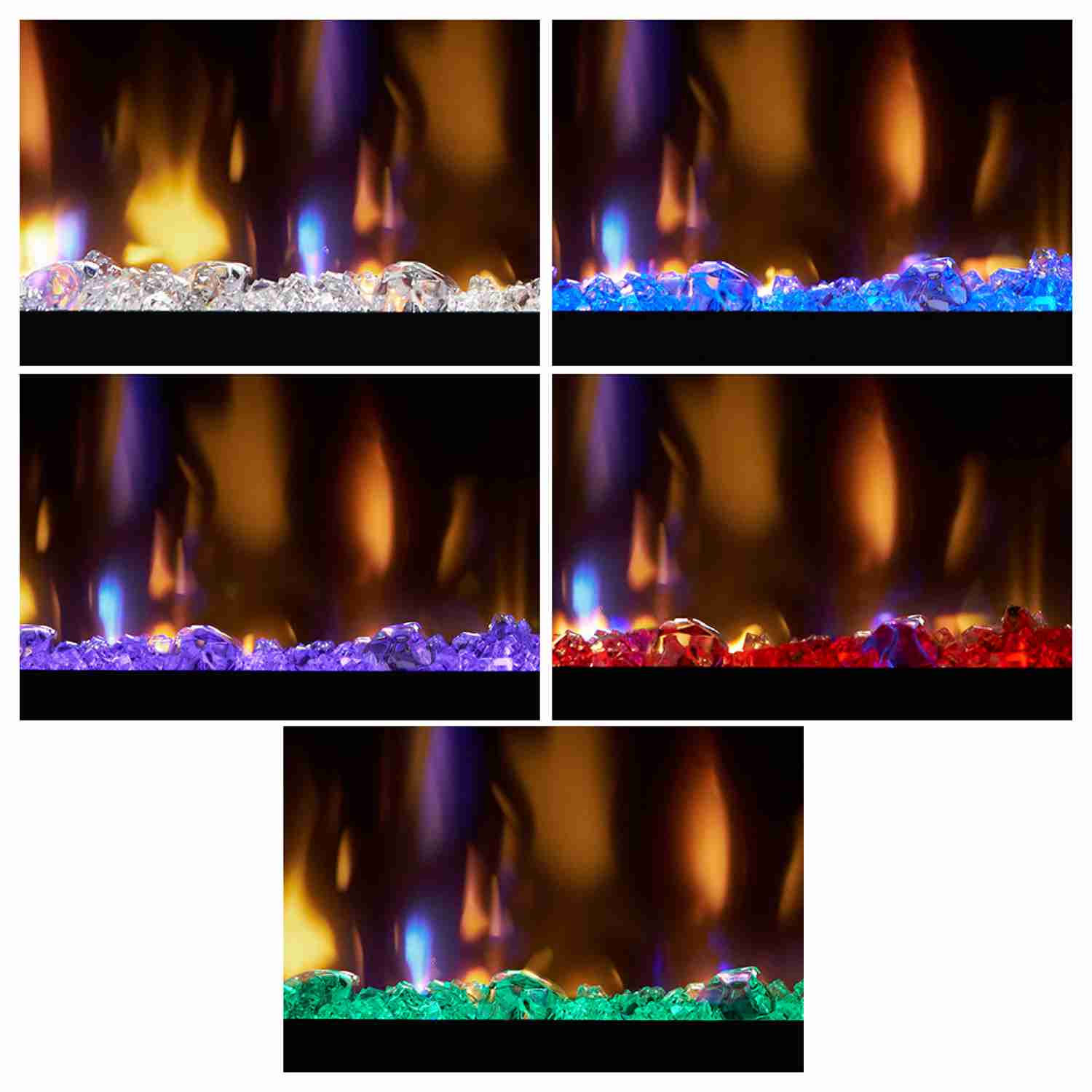 - 7 flame theme options: blue, orange, neutral, neutral with orange and blue accents, neutral with orange accents, neutral with blue accents, orange and blue combined