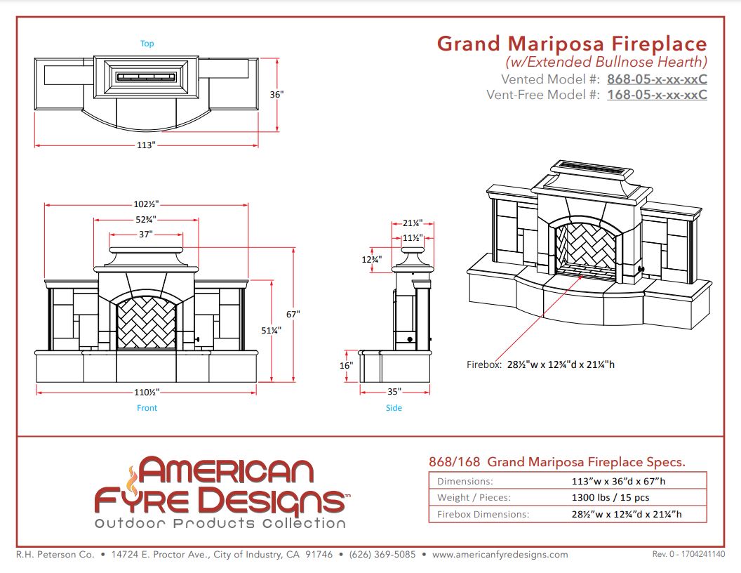 This full-sized classic outdoor fireplace provides a warm environment for friends and family to spend an evening together. The Grand Series Fireplaces incorporate wall extension panels to expand upon the body of the fireplace to create many new decorating opportunities while also providing a beautiful separation to the world behind the fireplace. Fireplaces may be ordered with recessed hearth to accommodate field cladding in tile, stone or other veneer.