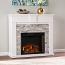 Cozy up to sophisticated style with this sleek electric fireplace. A spacious mantel easily displays your favorite books or decor pieces, while the elegant faux stone surround brings a classic fireplace feel to your living space. Realistic LED flames and remote-controlled features add modern convenience to your home design, working with or without heat for enjoyment in any season. Put chic style front and center when you place this electric fireplace in your family room or formal dining area.