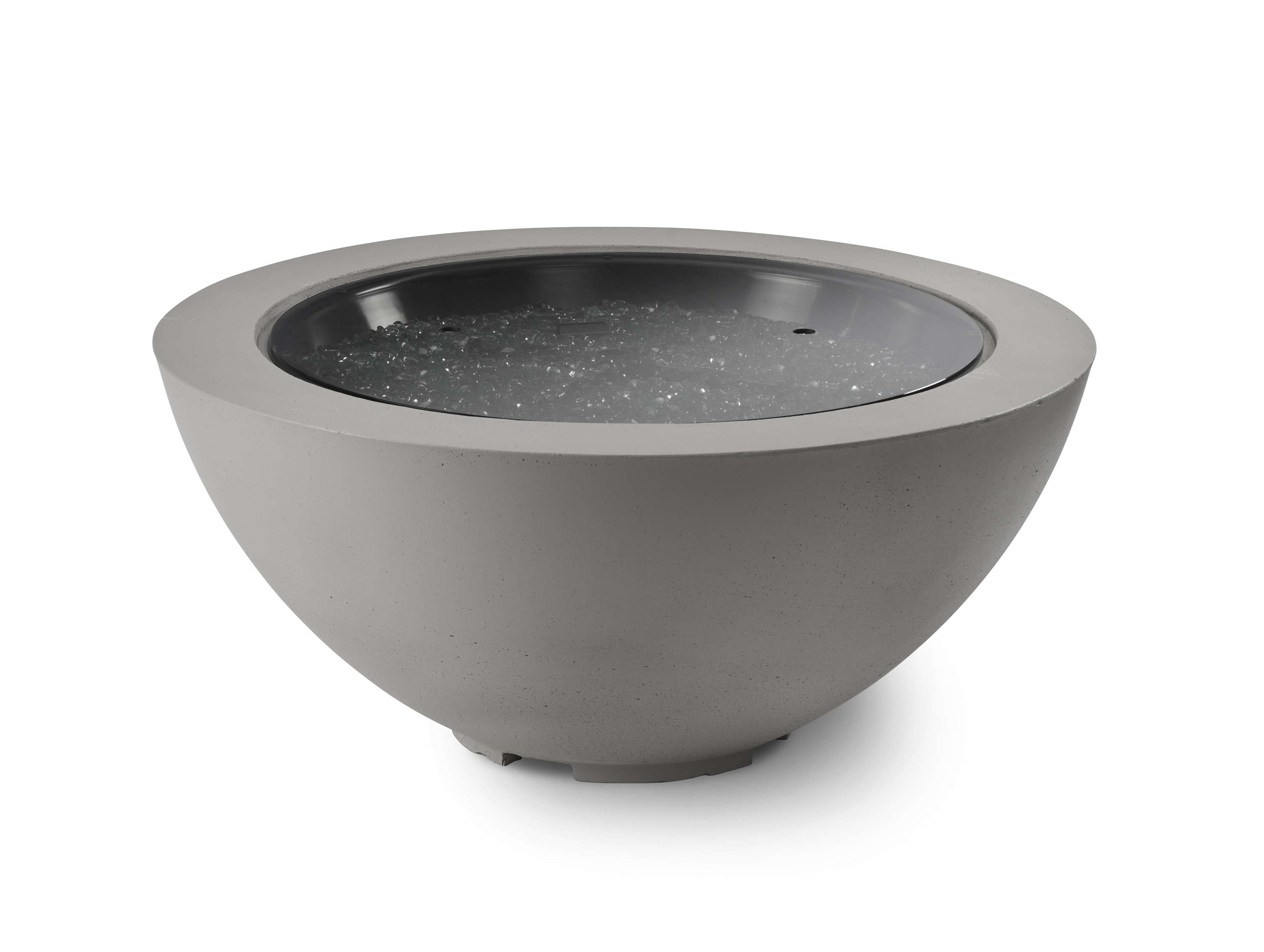 The 42" Cove Gas Fire Pit Bowl is the perfect addition to any contemporary outdoor space. The Natural Grey Supercast™ concrete lets the focus be on the stunning 30" Round stainless Steel Crystal Fire® burner. The organic, nature of the concrete is unique to each fire pit. Color variations and casual pitting are common attributes to the fire pit. Burner Cover Included.