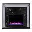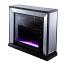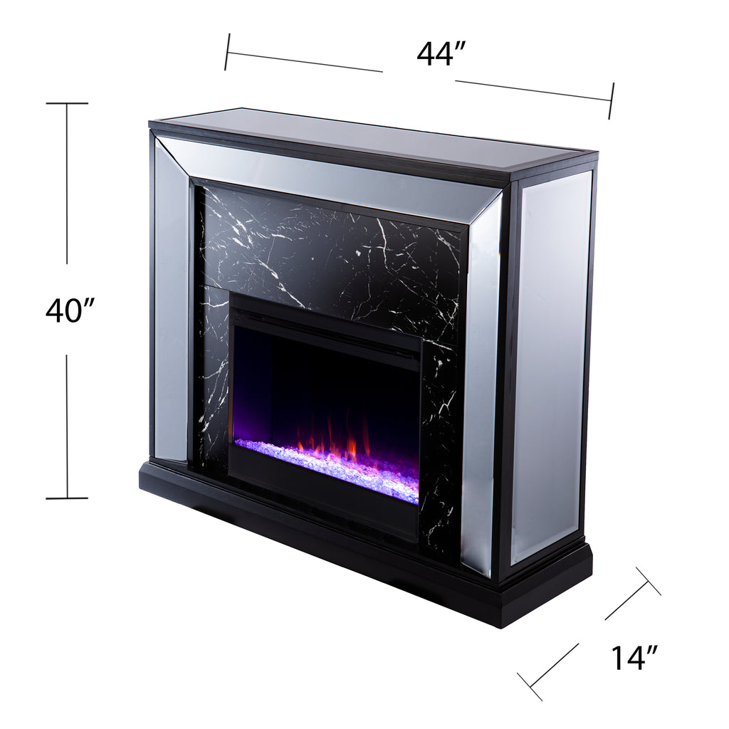 Glow up with this mirrored fireplace mantel. Reflective mirrored panels box in a faux marble surround, adding dimension to small spaces. Shimmering faux crystal adds ambiance with flickering LED flames, alternating colors, and lifelike embers, all from the convenience of your sofa. Sophisticated style leaves its mark when you upgrade your living space with this mirrored faux marble electric fireplace.