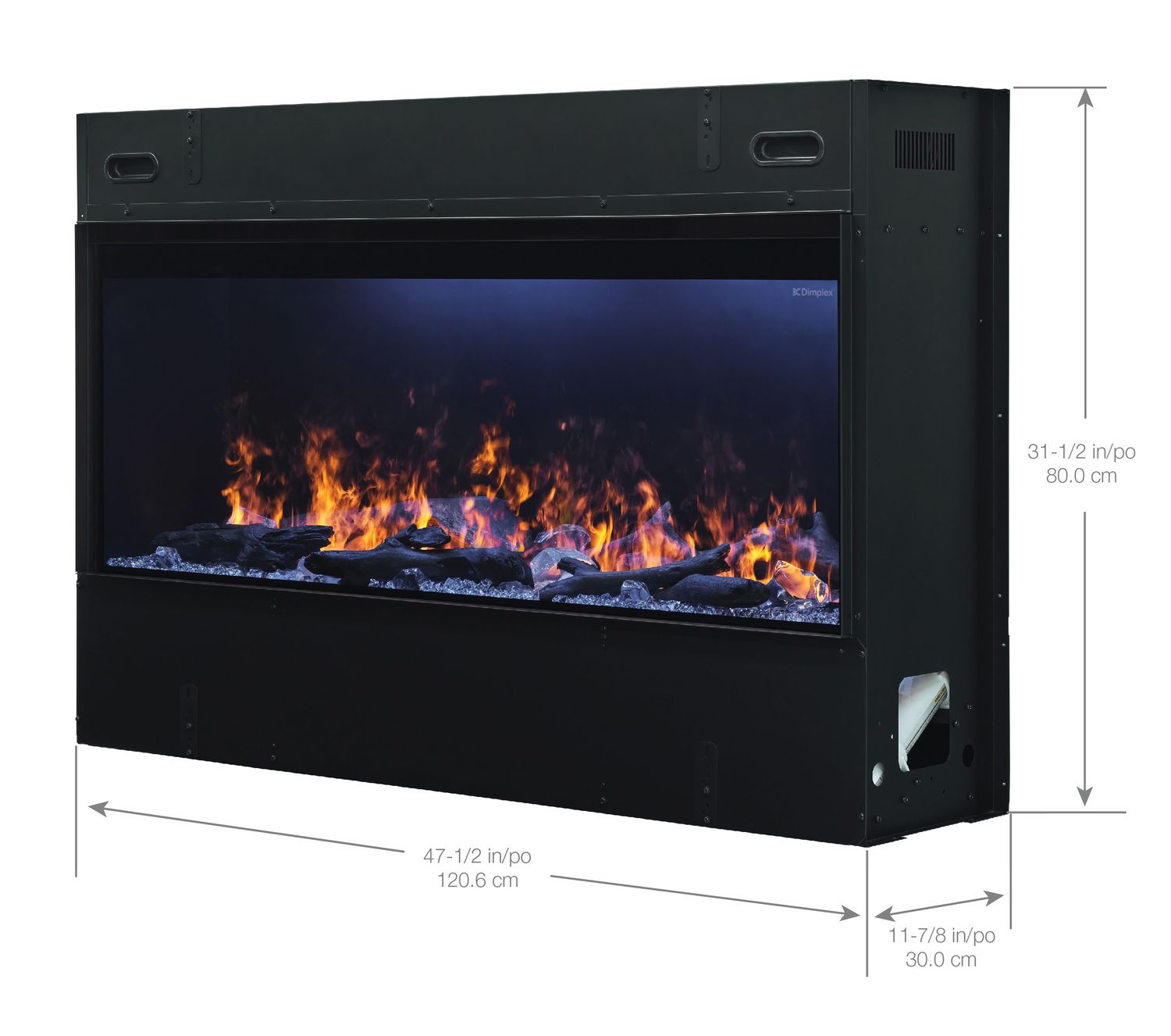 - Fireplace: 47.5"W x 31.5"H x 11.8"D