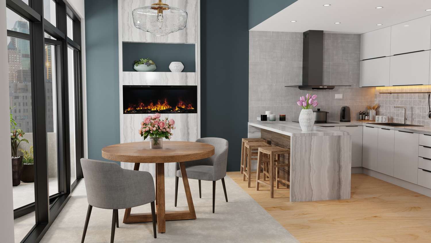 - Frame, Wire and Finish: Basic installation requires fewer tradespeople, no gas lines, venting, or chimney.