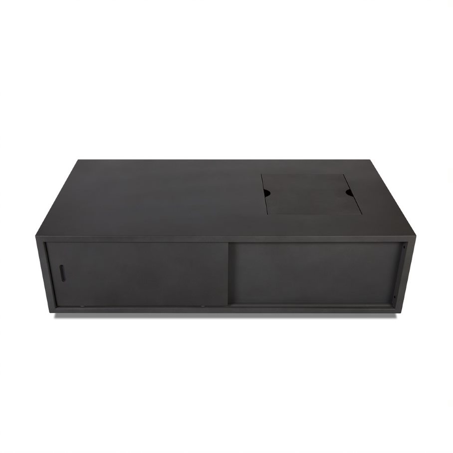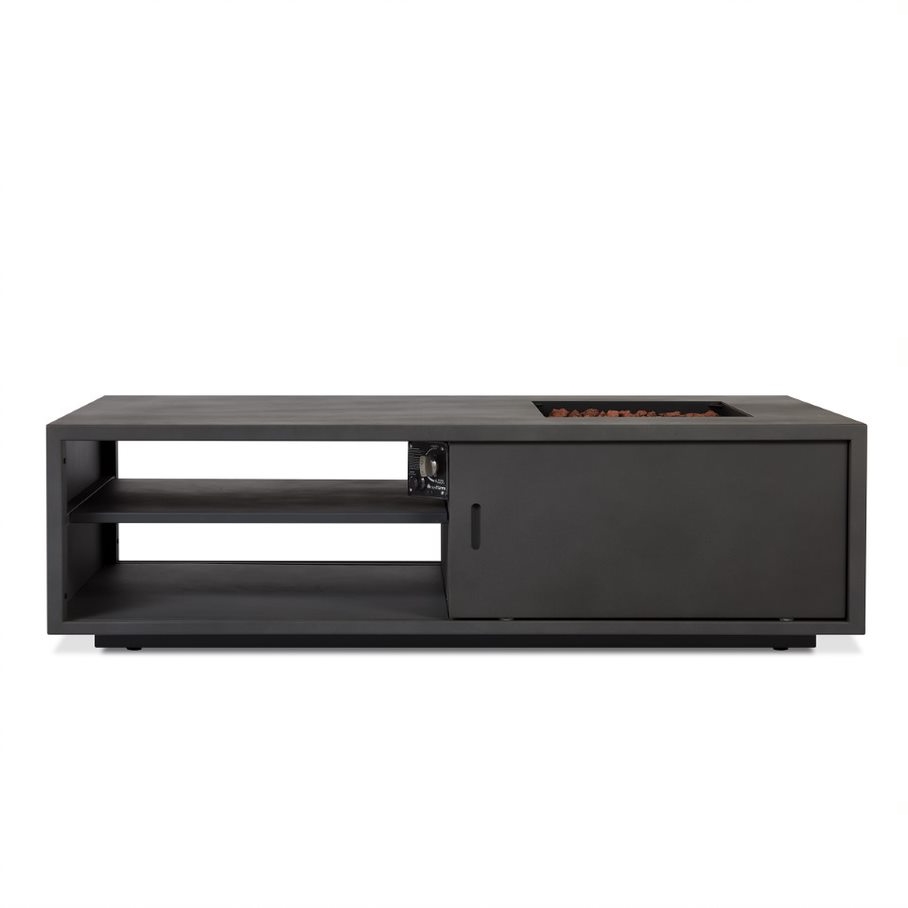 Style meets function in the innovative design of the Vance propane fire table. With a generous tabletop, the doors of this modern gas fire pit open on either side to reveal a convenient storage area and the flame's control panel. When the burner is not in use, transform this outdoor fireplace into a functional coffee table with the matching gray burner lid. A natural gas conversion kit is also included so you can decide what kind of fuel is right for you. *Includes fire table with adjustable leveling feet, stainless steel burner, propane tank seat, red lava rock filler, storage cover, 7' LP hose with regulator, natural gas conversion kit with 10' hose and quick connect socket and touch up paint.