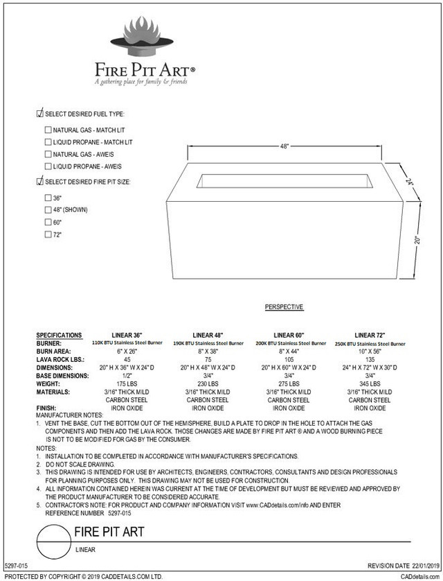 | This new modern design Linear Series from Fire Pit Art features thick three sixteenth carbon steel material and your choice of powder coating color. Steel leveling casters for a solid footing, a steel cover that protects the gas burners and converts the fire pit into a table are real advantages. Life-time warranty, Stainless Steel burner, all brass keyed valve, lava rock and stainless-steel gas flex lines round out this package.