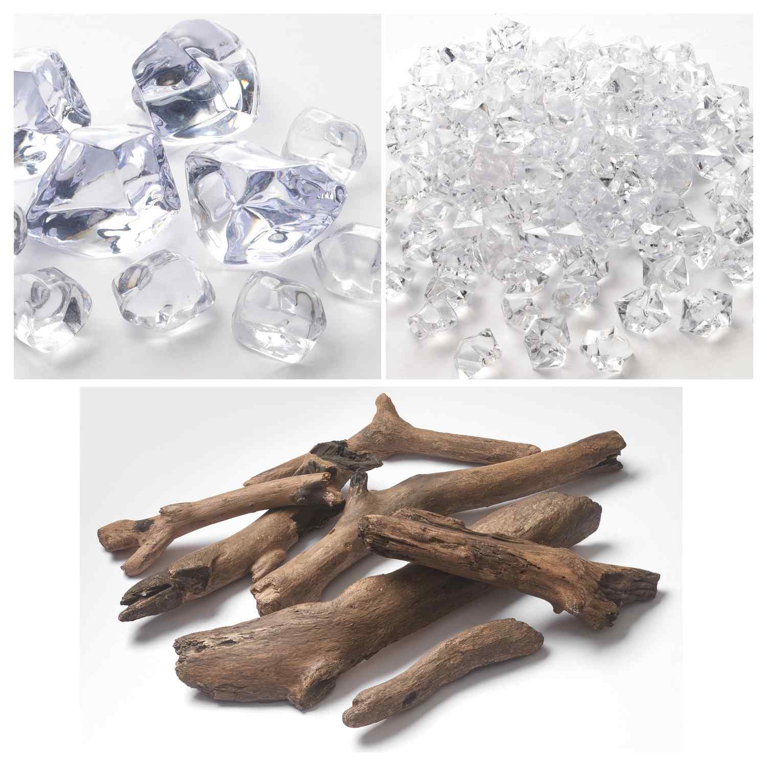 - Modern Media Bed: A stylish multi-media bed includes small and large acrylic crystals with natural looking driftwood.