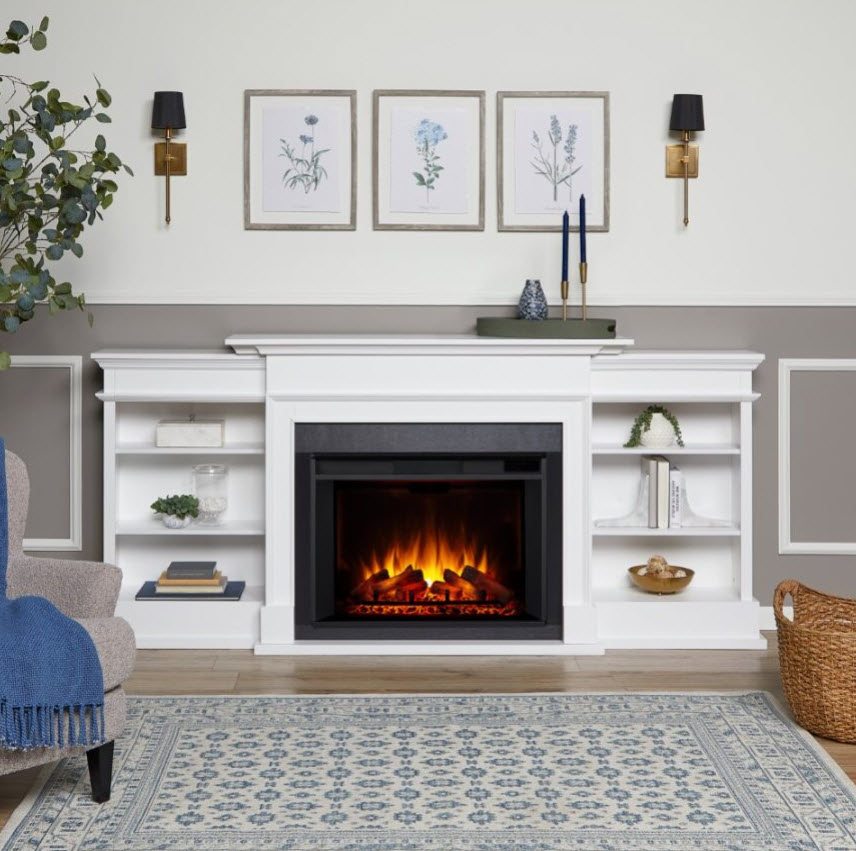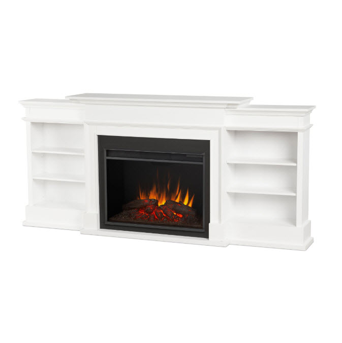 | Make a statement with this media center! The Ashton Grand Media center by Real Flame offers ample storage with adjustable shelving on either side. The VividFlame Grand Electric Firebox, which is 30% larger than our standard firebox, plugs into any standard outlet for convenient set up. Hassle-free assembly and adjustable heat settings are just a few of the benefits of this functional fireplace.